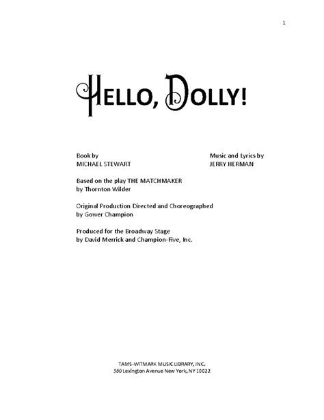 Read Online hello-dolly-script Ebook Kindle Editon By Click Button. hello-dolly-script Ebook it’s easy to recommend a new book category such as Novel, journal, comic, magazin, ect. You see it and you just know that the designer is also an author and understands the challenges involved with having a good book. You can easy klick for detailing book and you can read it online, even you can download it